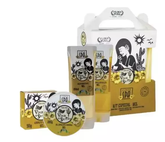 Essa é a linha Spa da Flora Pura,reunindo os extratos do sertão fizemos toda essa mistura para trazer ao seu corpo perfume e hidratação.