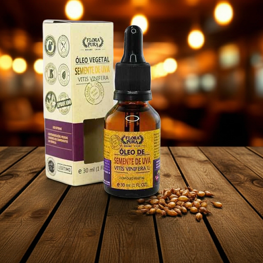 O Óleo de Semente de Uva Flora Pura possui um elevado teor de tocoferol (vitamina E) e ácido linoléico, que são responsáveis pelas suas diversas aplicações. A vitamina E, é um super antioxidante que ajuda na manutenção e regeneração de tecido cutâneo, revitalizando-o. O ácido linoléico os ômega 6 é um ácido graxo com propriedades anti inflamatório. O óleo de semente de uva serve como hidratante para corpo devido a sua propriedade umectante e emoliente, ajuda na prevenção de estrias e celulite, devido às alta concentração de tocoferol, que auxilia na elasticidade dos tecidos, restaurando o colágeno e melhorando a circulação periférica. Produto natural flora pura não testado em animais (cruelty free), empacotado em caixa sustentável feita com papel reciclado, com fórmula LIVRE de parabenos, petrolatos, sulfatos de ingredientes de origem animal (vegano).